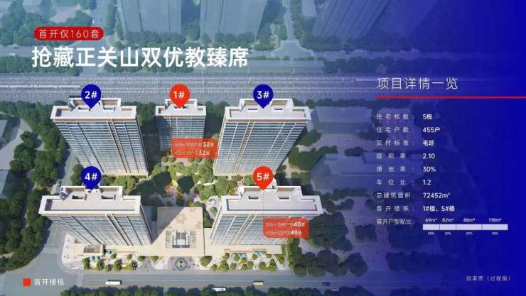 项目全盘仅455户,首开更是只有160套,货量极其稀缺,后续入市后注定抢手!想要低门槛上车关山核心、看重学区确定性、追求高性价比神户型的朋友,这大概率是近几年内为数不多的优质机会。