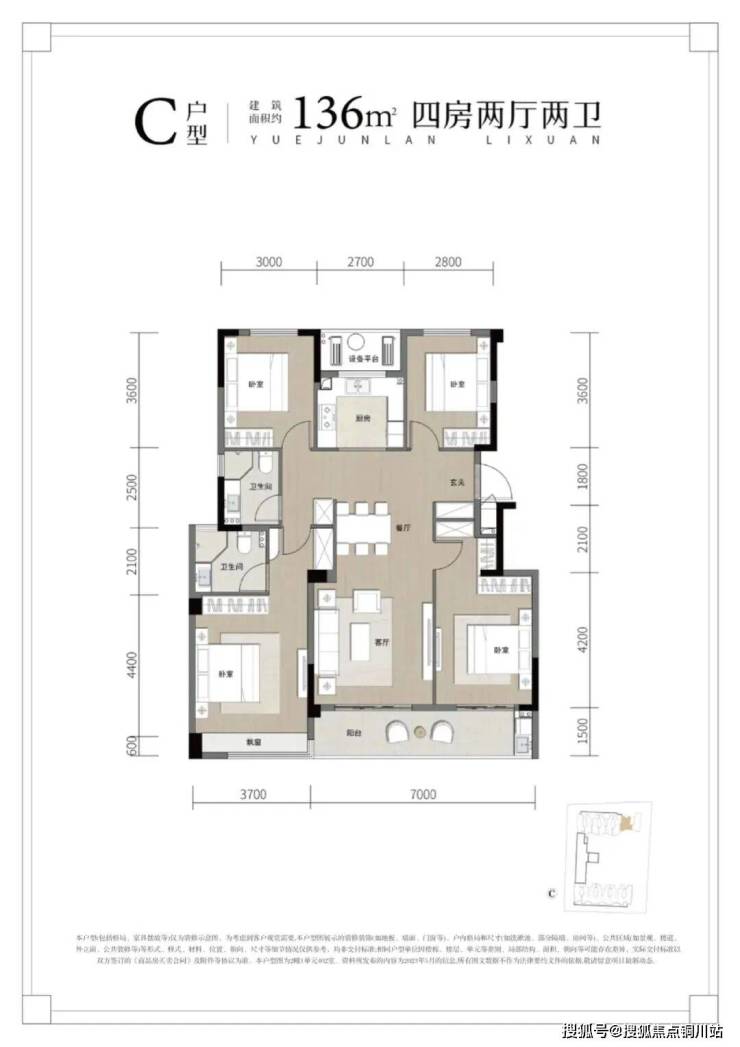 如果对空间有更高的追求,那么建面约136㎡的四房两卫设计便是品质优选。