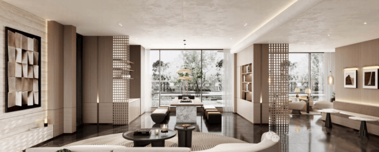 最高约6米,最大约44.9㎡的一字型奢装入户大堂则是业主归家的第二重仪式感。