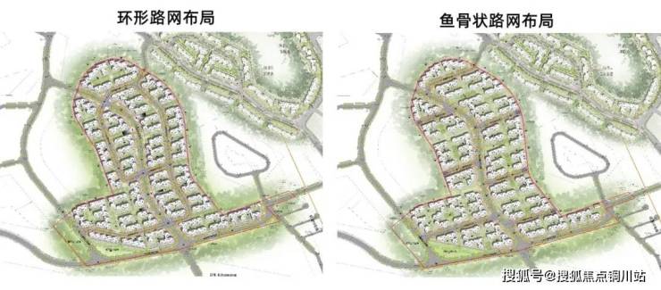 设计团队进一步结合两种路网布局对该方案进行了深化,更加贴近原始控规条件,归家体验更为顺畅的环形路网方案被最终选定。综合比选而非简单对比规划指标,让方案设计更加契合场地特质,呈现鲜明的在地化属性。
