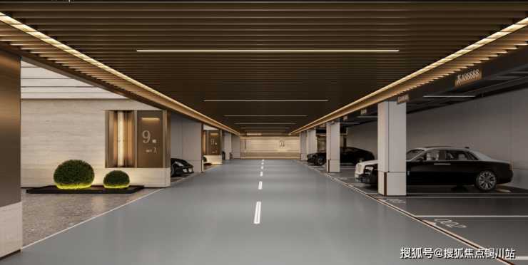 现在的高端住区,双精装大堂已经是标配,为了进一步提升尊崇感,建屋·新棠玥在地下大堂也打造了精致小景。同时,地下车库除了有星空顶,坡道精装金属铝板,水磨石材质的车位之外,还配备了地下采光井。