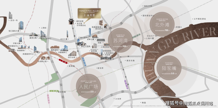 『保利永兴里』地处外滩超级豪宅区范围内的苏河湾区域,从老城厢风貌连绵区向东延伸,穿过东斯文里百年石库门群,直至苏河湾的滨水岸线——这条黄金中轴线上,每一寸土地都镌刻着城市文明的基因密码,牢牢占据着上海风貌产品土地价值的王座地位。