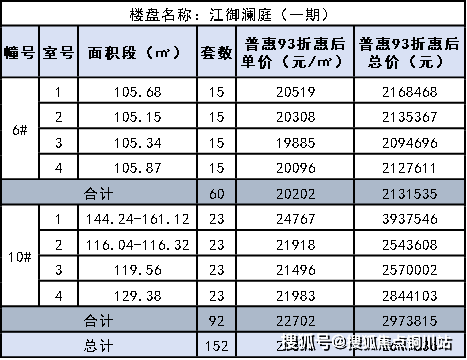 6#的105方看江视线较弱,惠后均价约1.97万多元/㎡。