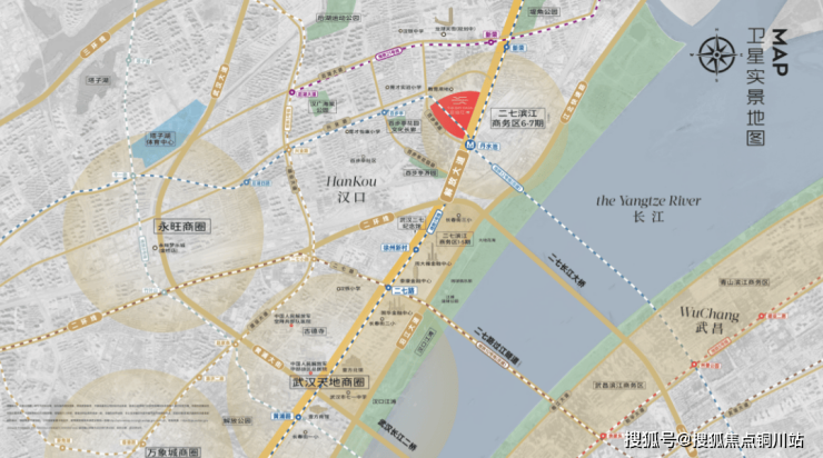 项目一路之隔就是武汉房价第一梯队的正在建设中的汉口国际滨江商务区,这里不仅豪宅云集、富豪扎堆,更有约475米的周大福金融中心、国华金融中心、华讯科技金融城、保利易瓦特项目等众多企业总部同时在建,这里未来将是整个武汉的金融中心与城市封面,是汉版的“陆家嘴”,是武汉发展的巅峰之所在。