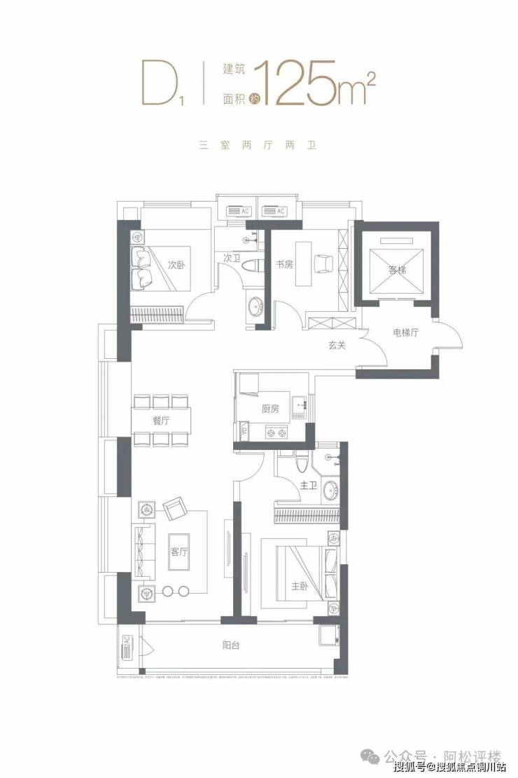 建面约125㎡ 三房两厅两卫: