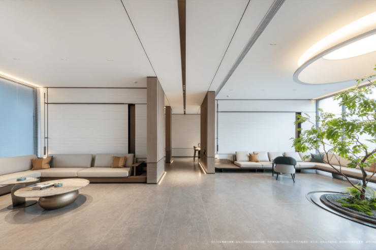 架空设计使得原本独立的建筑与环境产生了对话关系,营造出自然与建筑共融互渗的格局。越秀还想通过空间创造与城市的关系,还空间予城市,为人们开拓一个高舒适度、低密度的新体验空间。