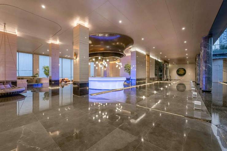 以往我们看过的不少豪宅都做了重点楼栋首层全架空的设计,在场景互动、功能体验上全面升级。比如无锡建发、武汉新希望等豪宅项目▼