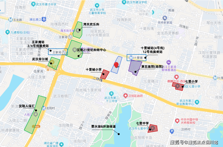 商业配套方面,步行700米范围内,汉商21世纪购物中心、武汉摩尔城、京东MALL等大型商业体一应俱全;医疗方面,武汉市第五医院西院就位于地铁十里铺站B出口旁,步行150米即达,且是公立三甲医院;生态休闲有墨水湖公园,直线距离约450米,日常散步遛娃都很方便;教育配套也在持续升级,十里铺小学正扩建并计划引入玫瑰园优质教育资源,七里中学计划改造为武汉第三寄宿中学联合学区。虽然学区最终划片还需等待官方确认,但片区教育能级提升的趋势已经明朗。