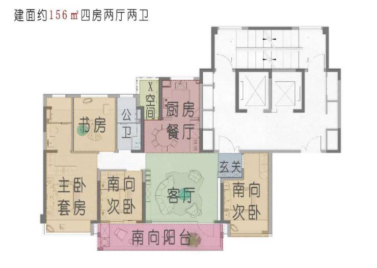 约156㎡房2厅2卫起步户型,同类型产品中的“卷王”,做到了半独立电梯厅、大四房、大横厅、独立玄关等豪宅配置,尺度感惊人。