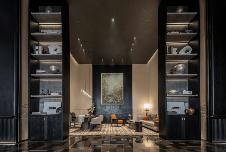 除此之外,狮山金茂府以纽约安缦酒店为设计灵感,将奢华酒店的细节、尊贵礼序与苏州在地文化中的苏绣、园林等元素融合,打造出了约1350㎡业主私享会所。