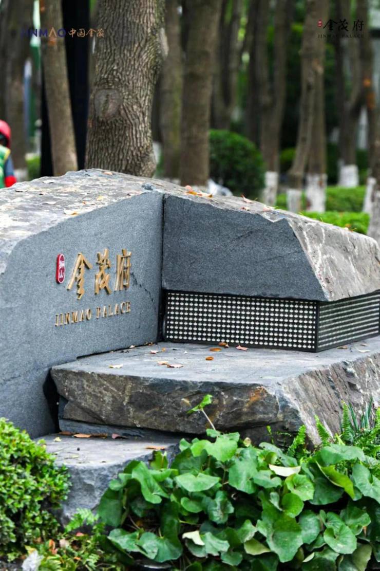 而且,为了不破坏整体和谐感,在大门上并没有张扬的“狮山金茂府”,而是在不起眼的路边留下了精致的LOGO。