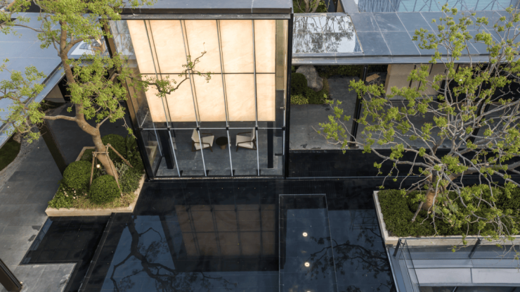 狮山金茂府豪宅配备室内恒温泳池、私宴厅、茶室、艺术长廊、水吧以及健身房、下沉庭院等功能空间,将艺术鉴赏、邻里社交、商务接待等融入到日常运动、生活中。