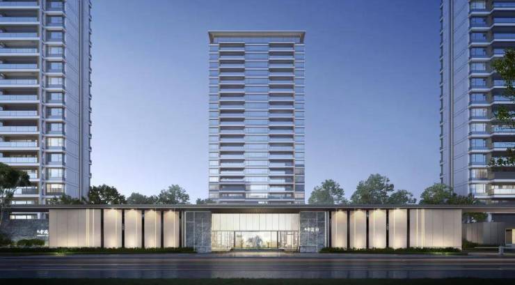 在立面设计上,狮山金茂府将繁复的装饰全部舍弃,再加上金茂的科技住宅无需空调外机设备平台的优势,让整个外立面呈现出现代简约的风格。