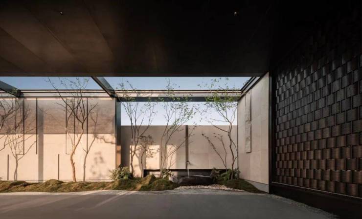 真正进入示范区之后,你就会有种走进了一个缩小版的苏州园林的错觉。灵感源于苏式建筑的四水归堂水景和1008片水波纹铜瓦组成的墙体给人非常强的视觉冲击,也让整个示范区一下子奢贵起来。
