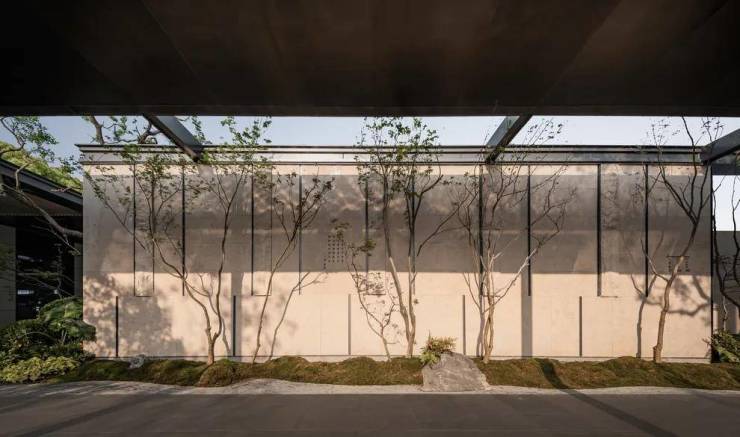 狮山金茂府的细节远不仅于此,在项目大门两侧才体现建筑设计的精彩,南大门两侧8面与北大门两侧12面屏和1008片水波纹金属瓦片的装饰,真正让人感受到豪宅的段位。