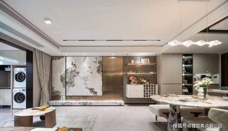 ①约2.7米超长玄关柜;②约5.8米跑道阳台;③落地窗设计;④岛台+预留插座;⑤卫生间岩板墙面……高达80+的产品细节。