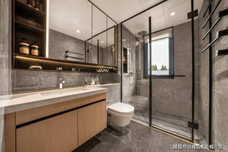 南向飘窗藏起清洁用品,镜柜里护肤品按使用频率排好队,台下盆装得下全家的洗护瓶罐 —— 连卫生间都清清爽爽,连洗漱都成了幸福小事。