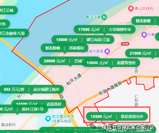 联投燕语光年在大武昌二环沿线,纵观周边同等环线位置的在售楼盘,青山二环附近的项目单价都在1.6万以上,毛坯房小户型总价都要170万+了。