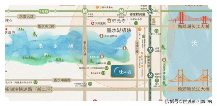 项目所在的墨水湖板块,介于汉阳老城与四新新城之间。