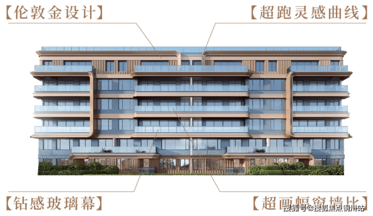建筑立面立面设计汲取了伦敦伦金中心的美学精髓,以香槟金铝板线条与大面玻璃窗结合,形成简洁现代的轮廓。