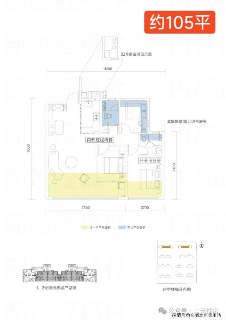 目前,项目的所有户型图都已经出来了,起步户型是105m²,独梯入户。