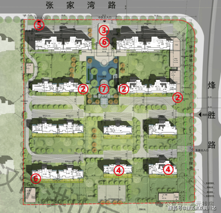 小区的下沉庭院在1/2/3/4号楼中间的围合区域,新增了公共会客厅。