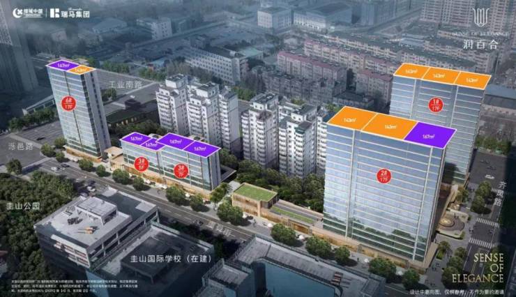 整个地块呈现凹字形,一共四楼,3栋17层小高,1栋5-7层的洋房,两种户型,143和167平。