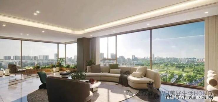 建面约152㎡户型创新采用270°环幕厅设计,三面采光,视野开阔无遮挡