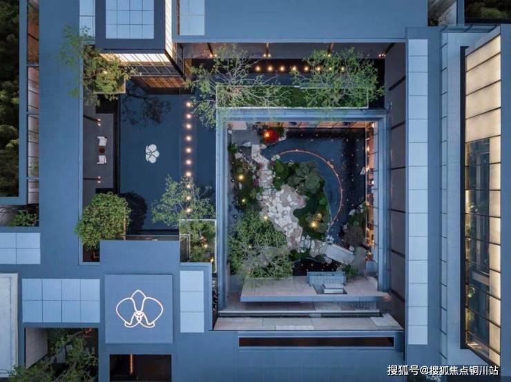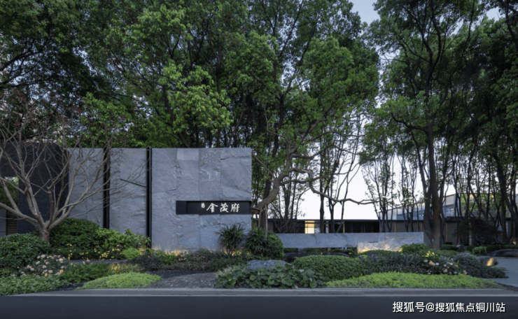 北门则主打精致隐奢,从超万方香樟森林入口,到1008片水波纹铜瓦构成的艺术墙体,每一处的硬质铺装还采用造价不菲的奢石……这样不计成本的工艺级,堪比北上广杭顶流项目,提升了整体的颜值和辨识度。