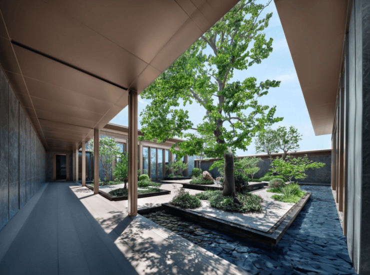 而项目内部的整体规划方面以沛县传承文化为基,融入国际现代建筑设计理念,一进是大门会所,二进是社区玄关,三进是整个社区,随后便是“一横三纵·七坊六院”的景观园林规划,以沛县社区规划要求的最低值的1.2超低容积率,实现传统格局与现代建筑的完美结合。