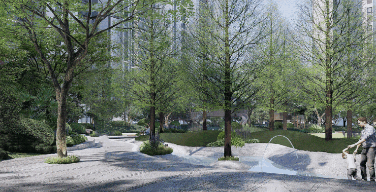 于是项目大手笔投入迭代园林,以“奇遇森林”为主题,打造“水之森”“木之森”“雾之森”“石之森”四重各具特色的森境。