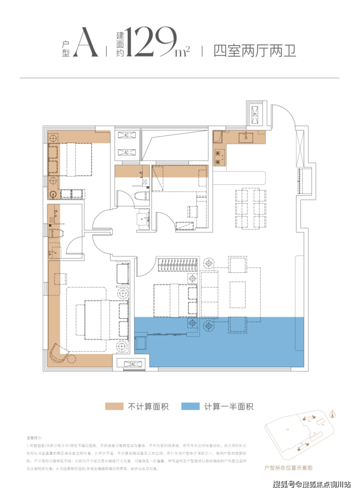 建面约129㎡四房更惊艳,直指追求进阶生活的改善家庭。