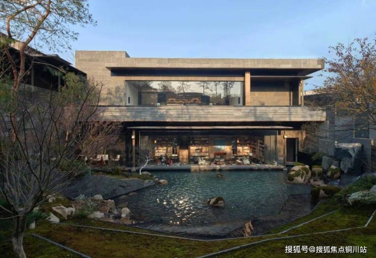 ▲茶亭与大堂/图书馆的对视,绿城·凤栖逸庐,义乌,实景图