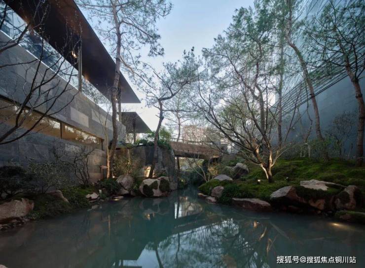 哪怕是地下泛会所的寻常走廊,也要开一扇窗,把下沉式庭院的风景借进来。当阳光把水波折射在山石上,青苔就变成了王维诗中「返景入深林,复照青苔上」的那片青苔。