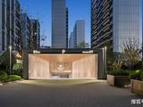 黛色金属架构搭配浅灰色石材及涂料立面,并与通透的浅灰色中空 Low-E 玻璃栏板+铝板材质相结合,营造出轻盈剔透的立面轻奢感受,让光与自然丰盈生活