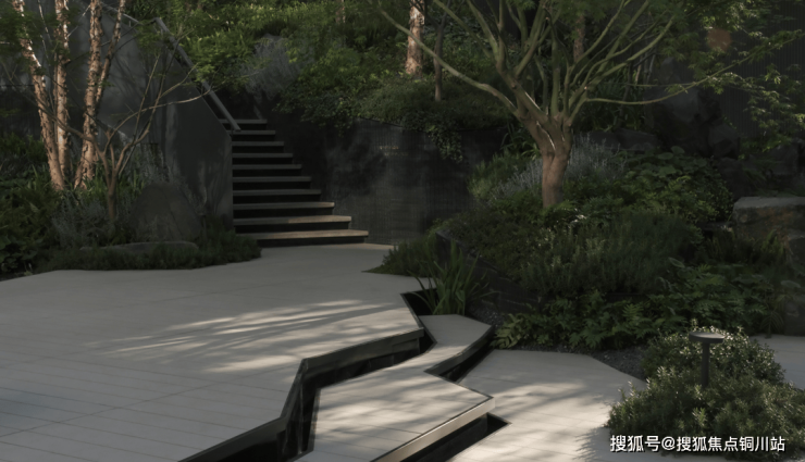 东方礼序归家体验:归家动线以前场酒店式落客的礼院门堂开启,结合地下会所打造的下沉浮岛森林,逐渐蔓延到地面层的中心景观花园,最后曲径通向各院的宅间花园。层层递进,又一以贯通。融合传统东方礼序与现代审美,每一进都有独特景观体验。