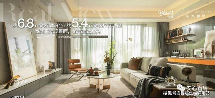 约6.8米宽双联阳台,约5.4米宽客厅落地窗