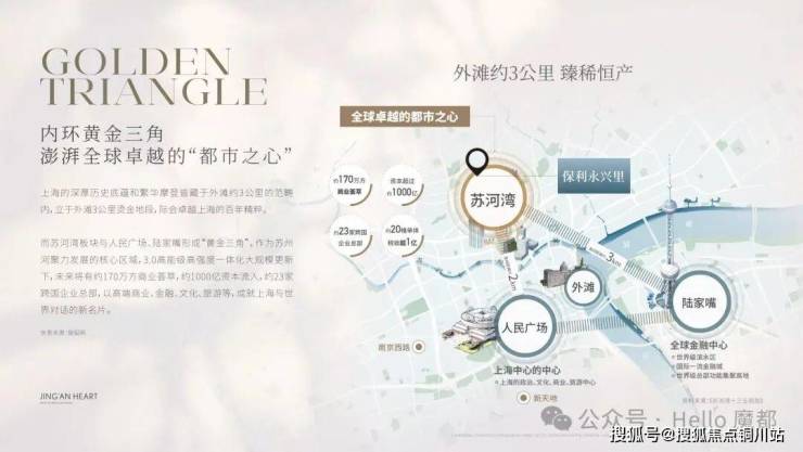 距离市中心人民广场距离仅约2公里,苏河湾商圈直线距离约900米,距离北外滩直线距离约700米,距离大悦城商圈约1公里,市中心最便捷、最繁华、最热闹的配套。