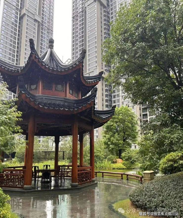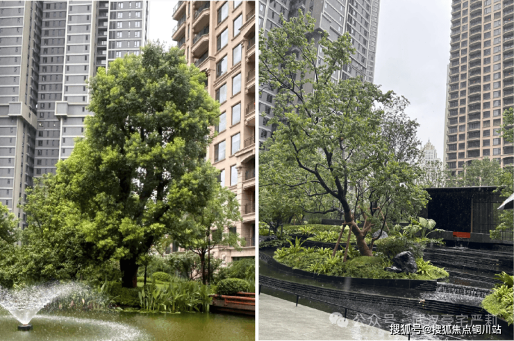 雨小了点,我顺道拐进隔壁快交房的润府看了看。润府的园林也挺好,设计很年轻化,叠水、儿童区、亲水平台,看着都挺清爽舒服,年轻人肯定喜欢。但站在润府再回看星河湾,那种感觉就上来了:润府是“好看”,星河湾是“讲究”。