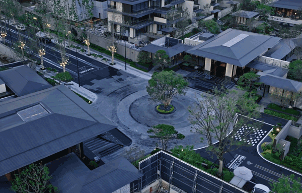 以义乌迎恩门为源,项目通过一条梧桐大道,构建出“有凤来仪”仪式长廊,轴心处一棵约八十年的桂花树安然伫立。这是串联西侧高层与东侧合院的纽带,也是完成从城市到家园的情绪转场,让归家之路成为一场穿越自然与人文的仪式。