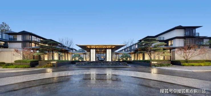 合院与高层的主入口,主入口屋顶水平舒展,展示大气矜贵的门仪风范。合院归家大堂名为“凤起迎禄”,高层归家大堂名为“凤起迎瑞”,两者遥相呼应。