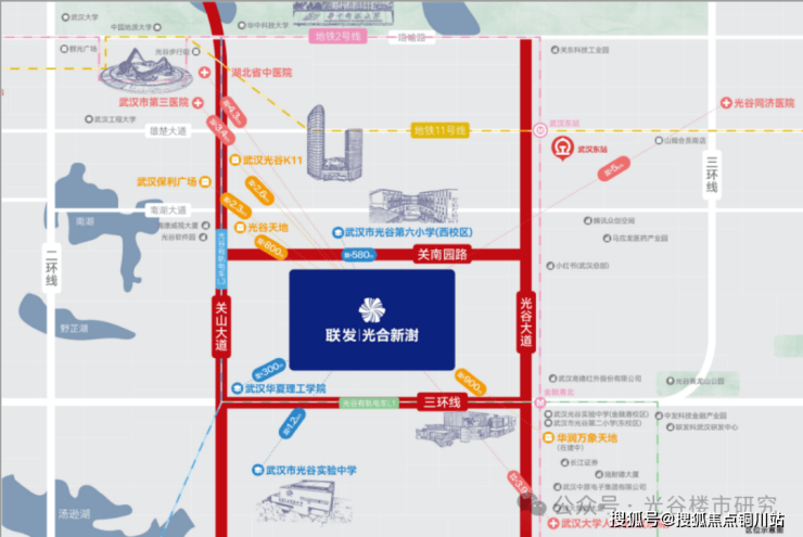 项目坐落于东湖高新区关南园一路,盘踞关山大道与光谷大道两大千亿产业主轴之间,牢牢占据光谷发展原点,也是区域人口与产业最密集的核心腹地。这里不仅是成熟度拉满的主城生活中心,更紧邻环华科大创新发展带,同步享受产业升级迭代、高端人才持续集聚的双重发展利好,地段价值毋庸置疑。