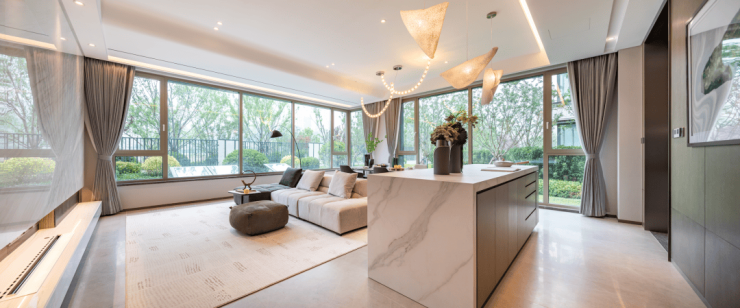 作为海信内部最高端的“君悦系”的洋房产品,海信安纳外立面全部为石材干挂,小高层为珍珠蓝石材,情景洋房为白玫瑰石材,内部精装标准与早已声名显赫的海信君澜相同,旭格系统窗、ASKO、唯宝等国际一线大牌都是标配。
