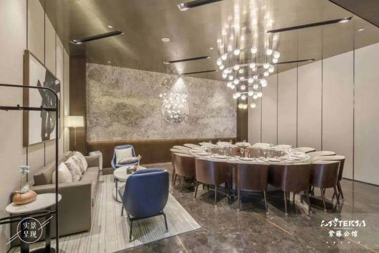 弧形转角造型,圆弧形铝板以及大面积low-e 玻璃落地窗,不仅打破了南岸纯中式豪宅的形态窠臼,也创造了北龙湖豪宅的另一种流线型表达方式。