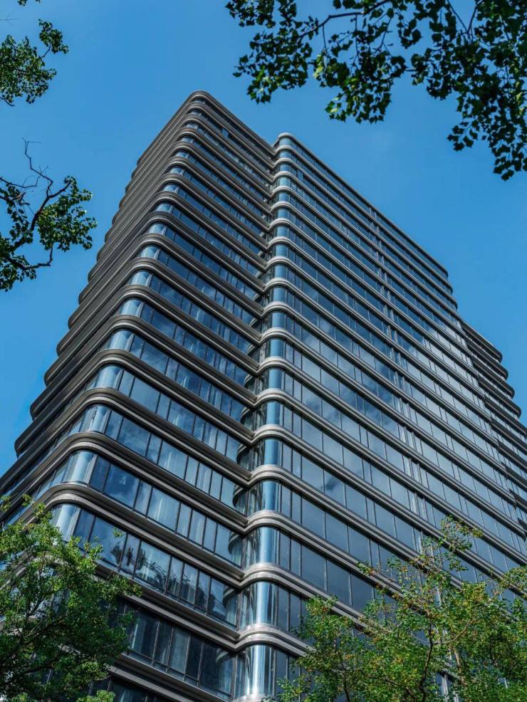 每一条曲线,都是一气呵成地贯通到东南西北四个立面,形成360°的环幕外立面。正是因为伟星采用了「六恒科技系统」,所以不需要做设备阳台,外立面上也就没有像补丁一样的格栅用来遮盖设备阳台。为了配合这样的环幕立面,日本YKK AP系统门窗还专门申请了压线构造、中横料构造、铆接构造这三项专利技术。 对外立面的刻画也精细到每一根线条,每一个门框和窗框,选用了YKK独有的SG级涂层,让窗框线条呈现出细腻的金属质感。