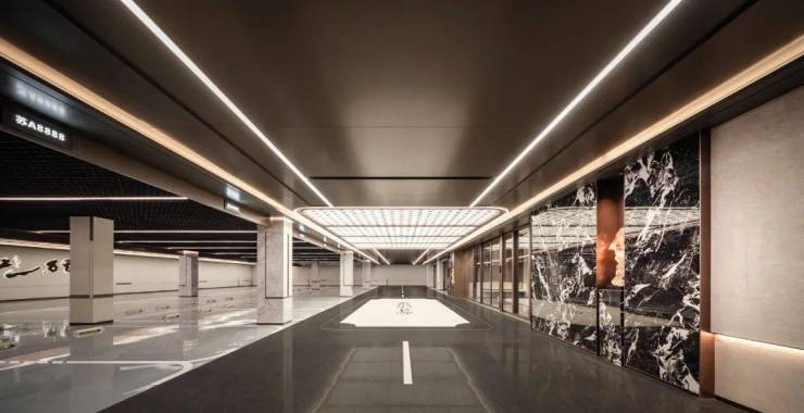 长江之歌地下车库通过层次感灯光设计+条形灯带+主车道水磨石地坪,使空间更加大气明亮的感觉更显丝滑,舒适,有别于其他项目的暗沉酒店风。
