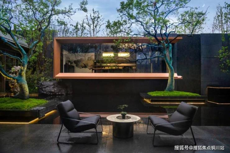 参考安缦京都的私域空间设计理念,项目在会所内设置了森系下沉式庭院、“悬浮”茶室等。