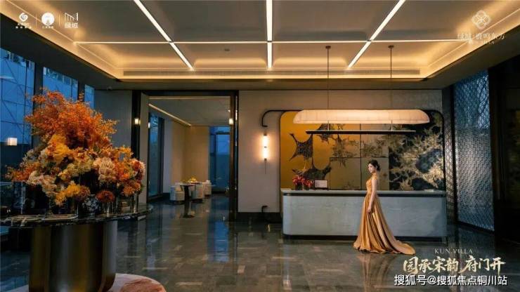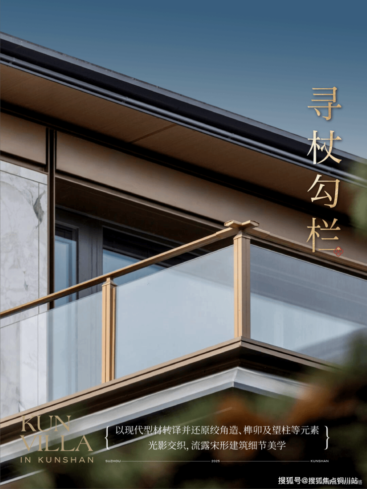在细节上,绿城又开创性地首次重构了苏工技艺的精妙:比如结合宋式山水画屏与昆玉精雕的“白玉画屏”;比如以铝合金材料转译还原绞角造、榫卯及望柱等元素的“寻杖勾栏”;又比如绿城首次取形昆山市花琼花融合并蒂莲元素打造的“金镂格栅”,这些技艺不但代表着宋式美学“百事精微”的精神,更透露出绿城对产品细节的偏执。