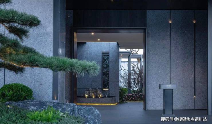 大门左侧气势恢宏的迎客松让业主归家能感受到尊崇感,右侧的柿子树也有“好事发生”的寓意,这也是对业主的祝福。
