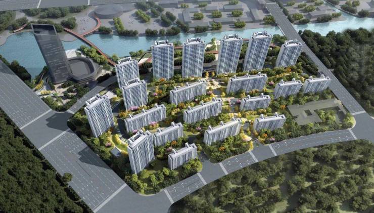 并且高层建筑沿着北侧河道一字霸气排开,北高南低的错位分布,能够在最大程度上保证每一楼栋的采光面。